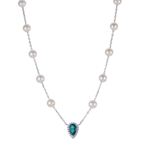 18" ADJ 16" 925 5-6MM FWCP LAB CRT EMERALD & WHITE TOPAZ NECKLACE