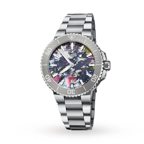 The colourful dial of the Aquis Date Upcycle 41.5 mm is made of recycled plastic bottles. This isn’t just for show – it’s a symbol of our belief that together we can bring Change for the Better. The Aquis Date Upcycle, a diver’s watch, turns waste into jewellery, addressing the global plastic crisis. It features a uni-directional bezel, screw-down crown, extendable bracelet for wetsuit use, luminous details, and 30 bar water resistance.