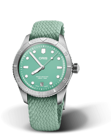 DIAL COLOR: Green STRAP MATERIAL: Textile MOVEMENT: Automatic CALIBER: 733 CASE MATERIAL: Multi-piece stainless steel case, minutes scale top ring