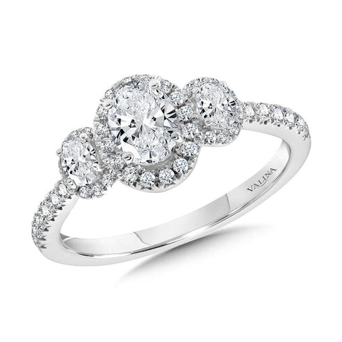 OVAL-CUT THREE-STONE DIAMOND HALO ENGAGEMENT RING R2261W-SR