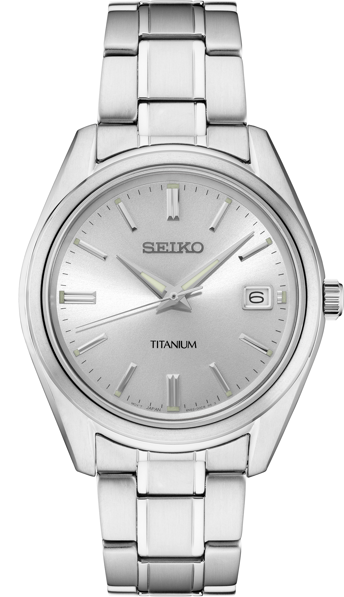 From the Essentials Collection. Offering classic dress/sport designs, the Essentials Collection provides the ideal solution for everyday wear. Crafted of durable and light-weight titanium, this perfectly tailored watch features a contemporary minimalist silver sunray dial with date calendar, for a superb blend of clarity and wearability. The sapphire crystal adds superior scratch resistance. 10 bar, 100M Water Resistant