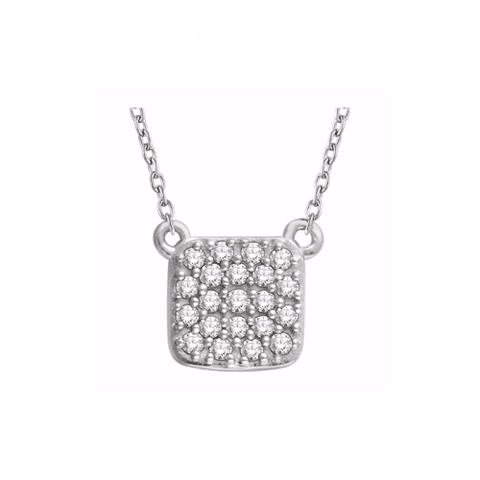 AVAILABILITY: Special Order COLLECTION: Diamond MATERIAL: 14K White Gold TYPE: Necklace CHAIN LENGTH: 18 CHAIN TYPE: Cable (Standard) NECKLACE TYPE: Diamond,Pendant STONE CLARITY: I1 STONE COLOR: H STONE SHAPE: Round STONE TOTAL WEIGHT - CT: 0.17 [/unique_description_1]