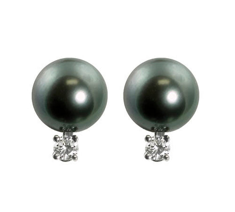 14k white gold 10-11mm Tahitian cultured pearl and diamond .30 ctw stud earrings. Best - Clean, excellent luster.