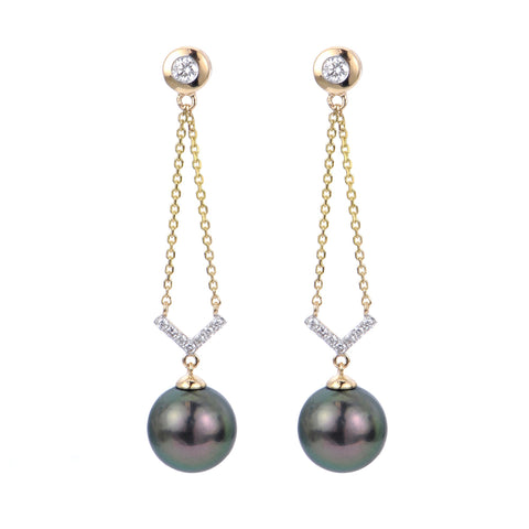 14KY 8-8.5MM PEACOCK TAHITIAN DIAMOND EARRINGS