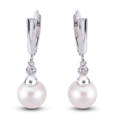 STG 8-8.5MM WHT FWP & DIA LEVERBACK EARRINGS