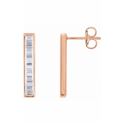 AVAILABILITY: Special Order COLLECTION: Diamond MATERIAL: 14K Rose Gold TYPE: Earring EARRING TYPE: Diamond,Stud EARRING BACKS: Push STONE CLARITY: I1 STONE COLOR: H STONE SHAPE: Baguette STONE TOTAL WEIGHT - CT: 0.5 [/unique_description_1]