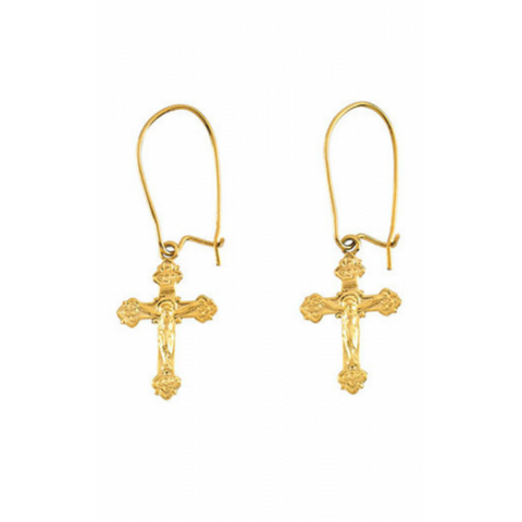 AVAILABILITY: Special Order COLLECTION: Religious and Symbolic MATERIAL: 14K Yellow Gold TYPE: Earring EARRING TYPE: Metal,Drop EARRING BACKS: French [/unique_description_1]