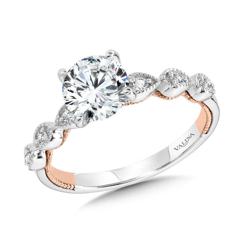 STACKABLE TWO-TONE & MILGRAIN-BEADED HIDDEN ACCENTS DIAMOND ENGAGEMENT RING R2267WP-SR