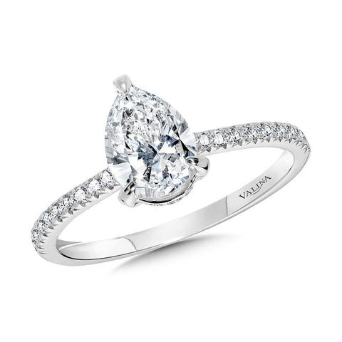 STRAIGHT PEAR-CUT DIAMOND & HIDDEN HALO ENGAGEMENT RING R2369W-SR