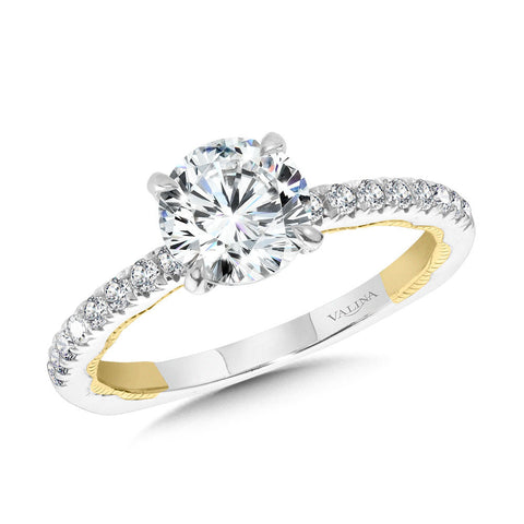 STRAIGHT TWO-TONE & MILGRAIN-BEADED HIDDEN ACCENTS DIAMOND ENGAGEMENT RING R2221WY