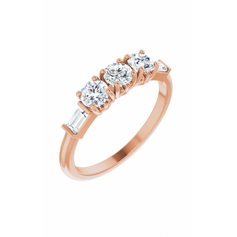 AVAILABILITY: Special Order COLLECTION: Three Stones MATERIAL: 14K Rose Gold TYPE: Engagement Ring RING SIZE: 7 SET: Engagement Ring STONE CLARITY: SI2 / SI3 STONE COLOR: G / H / I STONE SHAPE: Emerald STONE TOTAL WEIGHT - CT: 0.9 CENTER STONE INFORMATION