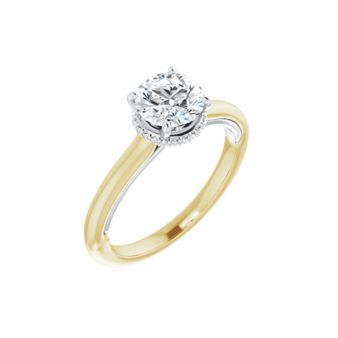 AVAILABILITY: Special Order COLLECTION: Accented MATERIAL: 14K White Gold / 14K Yellow Gold TYPE: Engagement Ring RING SIZE: 7 SET: Engagement Ring STONE CLARITY: SI2 / SI3 STONE COLOR: G / H STONE SHAPE: Round STONE TOTAL WEIGHT - CT: 0.06 CENTER STONE INFORMATION