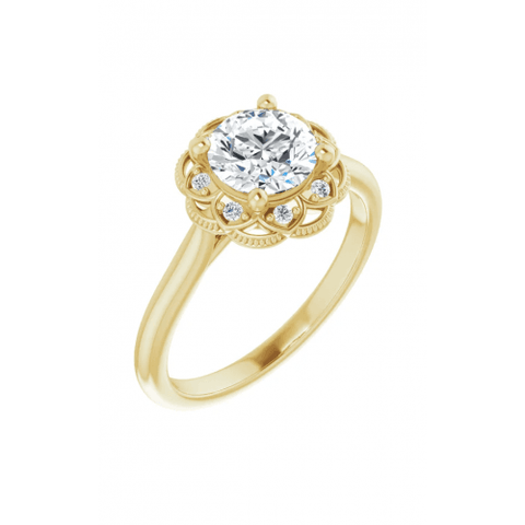 AVAILABILITY: Special Order COLLECTION: Halo MATERIAL: 14K Yellow Gold TYPE: Engagement Ring RING SIZE: 7 SET: Engagement Ring STONE CLARITY: SI2 / SI3 STONE COLOR: G / H STONE SHAPE: Round STONE TOTAL WEIGHT - CT: 0.08 CENTER STONE INFORMATION