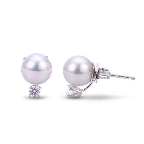 14KW 7-7.5MM AKOYA AND DIAMOND (.14 CTW) STUD EARRINGS