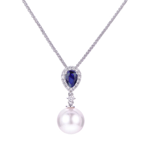 18" 14KW BLUE SAPPHIRE & DIA AKOYA DROP PENDANT