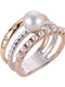 14K TRI-TONE 6.5-7MM AA FWCP & SEED PEARL DIAMOND RING