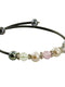 7.5" Sterling silver freshwater cultured pearl and prehnite/amethyst black rubber bracelet.