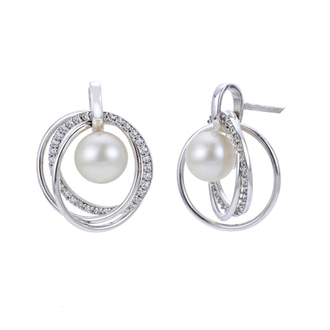 925 6.5-7MM FW CULT PEARL & WHITE TOPAZ EARRINGS