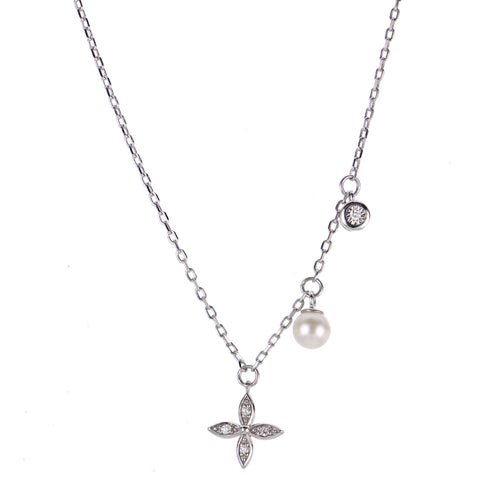 16"+ 2" EXT 925 4.5-5MM AA FWCP & DIA 4 PETAL FLOWER NECKLACE