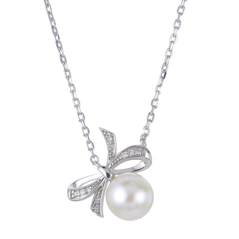 16-18" 925 8-8.5MM AA FWCP DIAMOND BOW NECKLACE