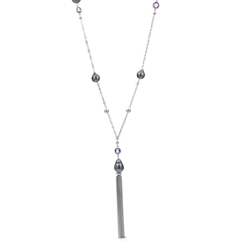 30" 925 8-9MM/10-11MM TAHITIAN RINGED BAROQUE AMETHYST TASSEL NECKLACE