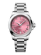 Date, Self-winding mechanical movement beating at 25'200 vibrations per hour, with a monocrystalline silicon balance-spring power reserve up to 72 hours. Screw-in crown, Water-resistant to 10 bar, Scratch-resistant sapphire crystal, with several layers of anti-reflective coating on both sides. Sunray pink dial, Swiss Super-LumiNova®. Stainless steel bracelet, With triple safety folding clasp and push-piece opening mechanism.