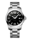 Date. Screw-in crown, Water-resistant to 30 bar, Scratch-resistant sapphire crystal with anti-reflective coating on the underside. Black lacquered polished dial, Swiss Super-LumiNova®. Stainless steel bracelet, With triple safety folding clasp and push-piece opening mechanism.