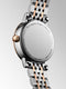 TECHNICAL DATAMODEL: L4.330.5.87.7 COLLECTION: Elegance SUB COLLECTION: Elegant DIAL COLOR: White STRAP MATERIAL: Stainless Steel STRAP BUCKLE: With triple safety folding clasp and push-piece opening mechanism MOVEMENT: Quartz CALIBER: 296 CASE SHAPE: Round CASE SIZE: 30.00 mm CASE MATERIAL: Stainless steel and 18 karat pink gold cap 200 WATER PROOF: 3 bar