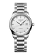 Date, Self-winding mechanical movement beating at 28'800 vibrations per hour, with a power reserve up to 45 hours. Water-resistant to 3 bar, Scratch-resistant sapphire crystal. Silver "barleycorn" dial. Stainless steel bracelet, With triple safety folding clasp and push-piece opening mechanism.