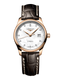 TECHNICAL DATAMODEL: L2.257.8.87.3 COLLECTION: Master DIAL COLOR: White STRAP COLOR: Brown STRAP MATERIAL: Alligator STRAP BUCKLE: With triple safety folding clasp and push-piece opening mechanism Chronograph: Yes Chronograph Functions: Chronograph mechanism: central 60 seconds hand and 30 minutes counter at 9 o'clock MOVEMENT: Automatic CALIBER: 592 CASE SHAPE: Round CASE SIZE: 29.00 mm CASE MATERIAL: 18 karat pink gold WATER PROOF: 3 bar