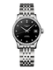 Date, Self-winding mechanical movement beating at 28'800 vibrations per hour, with a monocrystalline silicon balance-spring power reserve up to 45 hours. Case set with 52 Top Wesselton IF-VVS diamonds, for a total of 0.405 carats, Water-resistant to 3 bar, Scratch-resistant sapphire crystal, with several layers of anti-reflective coating on the underside. Black lacquered polished dial. Stainless steel bracelet, With triple safety folding clasp and push-piece opening mechanism.