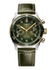 Chronograph Flyback, Self winding mechanical movement beating at 28'800 vibrations per hour, with a monocrystalline silicon balance-spring power reserve up to 68 hours. Bi-directional rotating bezel Screw-in crown, Water-resistant to 10 bar, Scratch-resistant sapphire crystal, with several layers of anti-reflective coating on both sides. Green dial, Swiss Super-LumiNova®. Leather strap bracelet, With double security folding clasp with micro adjustment system.