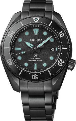 Prospex Black Series Limited Edition of 3,500 Production serial number engraved on caseback Automatic with manual winding capability Black ceramic uni-directional rotating elapsed timing bezel Black dial Green LumiBrite Pro hands and markers Date calendar Screwdown crown and caseback Tri-fold push button release clasp with secure lock and extender