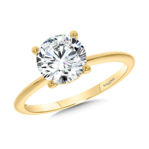 A stunning round center stone rests above a classic, delicate 14K gold shank. A look as timeless as it is breathtaking.