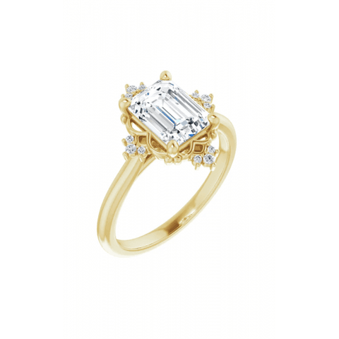 CENTER STONE SHAPE: Emerald CENTER STONE TYPE: Not Included (Sold Separately) CENTER STONE WEIGHT RANGE FROM - CT: 0.75 CENTER STONE WEIGHT RANGE TO - CT: 1.25