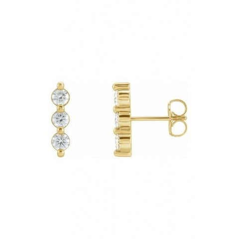 Earrings infuse color and charm into any attire. These attractive diamond and stud earrings from Stuller can instantly add some pizzazz casual wear or complement your formal get-up. These earrings are made of 14k yellow gold, which look great under any light. Exquisite diamond stones capture the imagination with its clean design. A durable setting preserves the round stones from everyday life. Rest assured that the earring backs will keep your look intact all day. Azzi Jewelers in Ingham County brings customers an incredible of minimalist and dramatic earrings and fashion jewelry. For more information reach out to us online or over the phone.