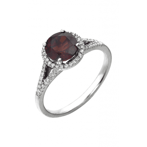 CENTER STONE SHAPE: Round CENTER STONE TYPE: Garnet