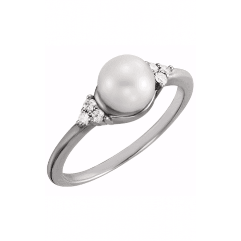AVAILABILITY: Special Order COLLECTION: Pearl MATERIAL: 14K White Gold TYPE: Ring RING SIZE: 7 RING TYPE: Pearl STONE CLARITY: I1 STONE COLOR: G / H STONE SHAPE: Round CENTER STONE INFORMATION
