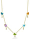 Five fantasy-cut gemstones are evenly spread across this necklace creating a bright and bold look. For extra sparkle, each gemstone has a bezel-set diamond dangling below it.