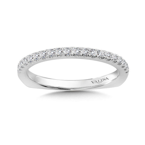 True fit matching diamond wedding band and a beautiful reminder of that special day for years to come.