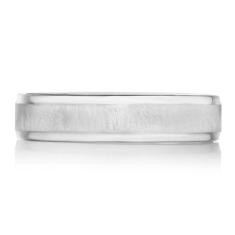 High polish edges complement a satin finish to give this wedding band contemporary and exceptionally handsome edges. The inner face of the ring features a full sculpted crescent detail with a soft-comfort fit for all-day wearability.