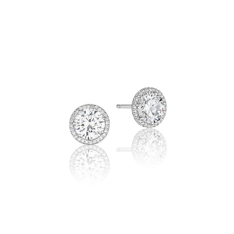 Spotlight on YOU! Beautiful brilliant round diamonds are brought to life with a spotlight of diamonds for a pair of timeless diamond stud earrings.