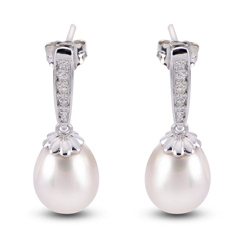14kt White gold 8-8.5MM white freshwater cultured pearl & diamond (.06 ctw) earring. (Matching pendant 986237/WH)