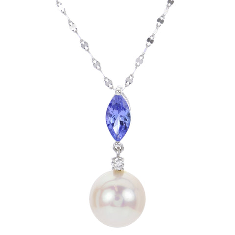 14KW 18" 9-9.5MM AA FW CULT PEARL TANZANITE & DIA PENDANT