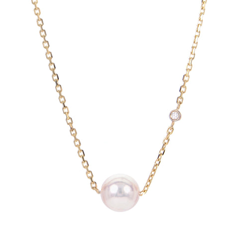 14KT YELLOW 18" ADJ TO 16" 7-7.5MM AKOYA CULTURED PEARL & DIAMOND NECKLACE