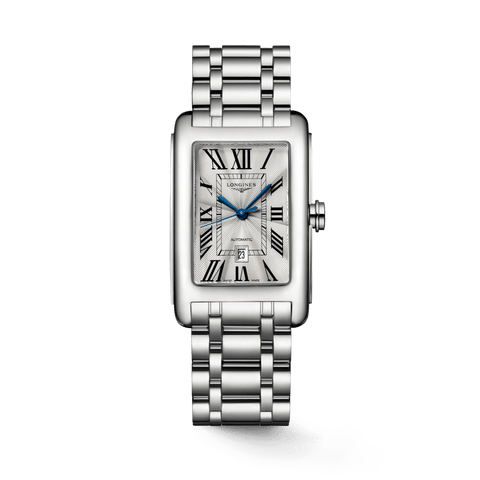 TECHNICAL DATAMOVEMENT: Automatic CALIBER: L592 WATERPROOF: Water-resistant to3 bar CASE SIZE: 27.70 X 43.80 mm CASE SHAPE: Rectangular CASE MATERIAL: Stainless steel STRAP MATERIAL: Stainless steel STRAP CLASP: With triple safety folding clasp and push-piece opening mechanism DIAL COLOR: Silver "flinqué" GLASS MATERIAL: Sapphire crystal CRYSTAL TYPE: Sapphire