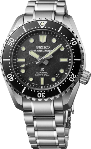 Prospex Marinemaster 1968 Heritage Diver's Watch Part of the high-intensity Marinemaster series with a case design honoring Seiko's 1968 Diver's Watch Automatic with manual winding capability Black uni-directional rotating elapsed timing bezel Textured black dial providing a high contrast with the indices for superior visibility Date calendar LumiBrite hands and markers Screwdown caseback Deep knurling on the screwdown crown and bezel edge for easy operation Tri-fold push button release clasp with secure lock and extender
