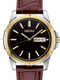 From the Essentials Collection. Offering classic dress/sport designs, the Essentials Collection provides the ideal solution for both everyday wear and dress occasions. Crafted with a two-tone brushed and polished stainless steel case and brown leather strap, this perfectly tailored design features a charcoal sunray dial with gold accents, day/date calendar, and LumiBrite hands and markers. 10 bar, 100M Water Resistant
