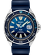 Prospex PADI Special Edition Special edition celebrating the partnership between Seiko Prospex and PADI, the world’s leading scuba diver training organization Patterned and gradated blue dial reflecting the surface of the ocean as seen from under water as the sunlight reaches through the waves on the surface Automatic with manual winding capability Blue ceramic uni-directional rotating elapsed timing bezel with vivid blue accents Magnified date calendar LumiBrite hands and markers with a unique blue glow Screwdown crown and caseback