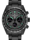 Prospex Black Series Speedtimer Solar Chronograph. Designed for those who treat life as the ultimate adventure, Seiko Prospex keeps moving forward, meeting every challenge with technological excellence and winning design. This dramatic watch is part of a high-intensity collection inspired by the 1969 “Speedtimer,” the world’s first self-winding chronograph, extending it to the Black Series. Featuring the newly developed “Green LumiBrite Pro,” developed for divers by combining the color most recognizable in the dark with a higher brightness and longer afterglow, this extraordinary timepiece provides a “night vision” for visibility in the dark similar to the view seen through a night scope. The chronograph function measures up to 60 minutes of elapsed time in 1/5-second increments and includes a split time function, while the solar cell, powered by any light source, with no battery change required, provides a 6-month power reserve when fully charged. The dark gray dial includes three black subdials, with a 24-hour indicator and power reserve indicator, as well as a date calendar and green LumiBrite on hands, markers and the tip of the chronograph hand. Crafted of stainless steel with black hard coating, curved anti-reflective sapphire crystal, black tachymeter bezel, secure screwdown caseback and tapered three-link bracelet with tri-fold push button release clasp. 10 bar, 100M Water Resistant
